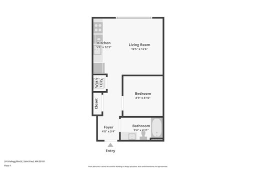 1 Bed 1 Baths | 500 Sq. Ft.